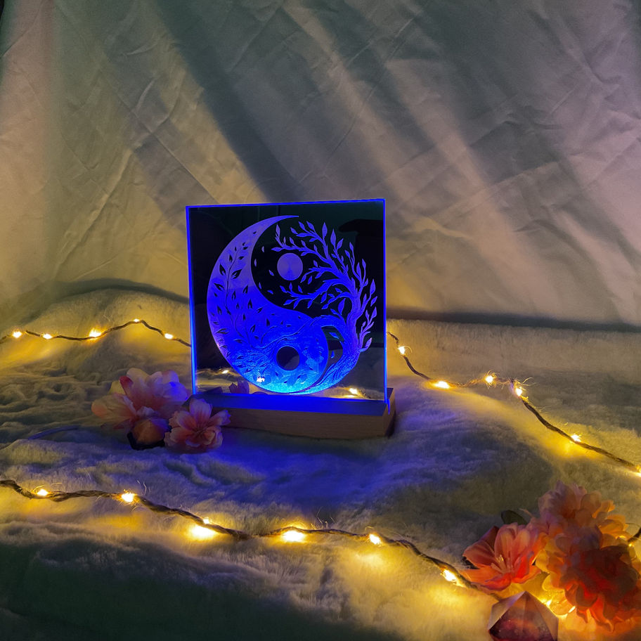 Monté sur un socle LED, il diffuse une douce lumière qui met en valeur la gravure pour une décoration originale et élégante.